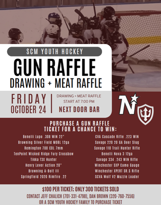 SCM Youth Hockey 2025 Gun RaffleSupport local youth hockey and take your chance at winning one of 16 firearms. Only 300 tickets will be sold.
